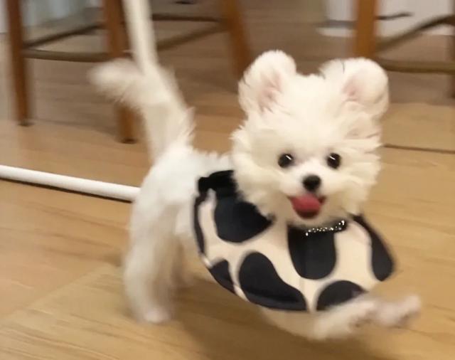 当狗狗心情愉悦时,走起路来都和平时不一样,会变得一蹦一跳的,像个上了发条的小玩具。