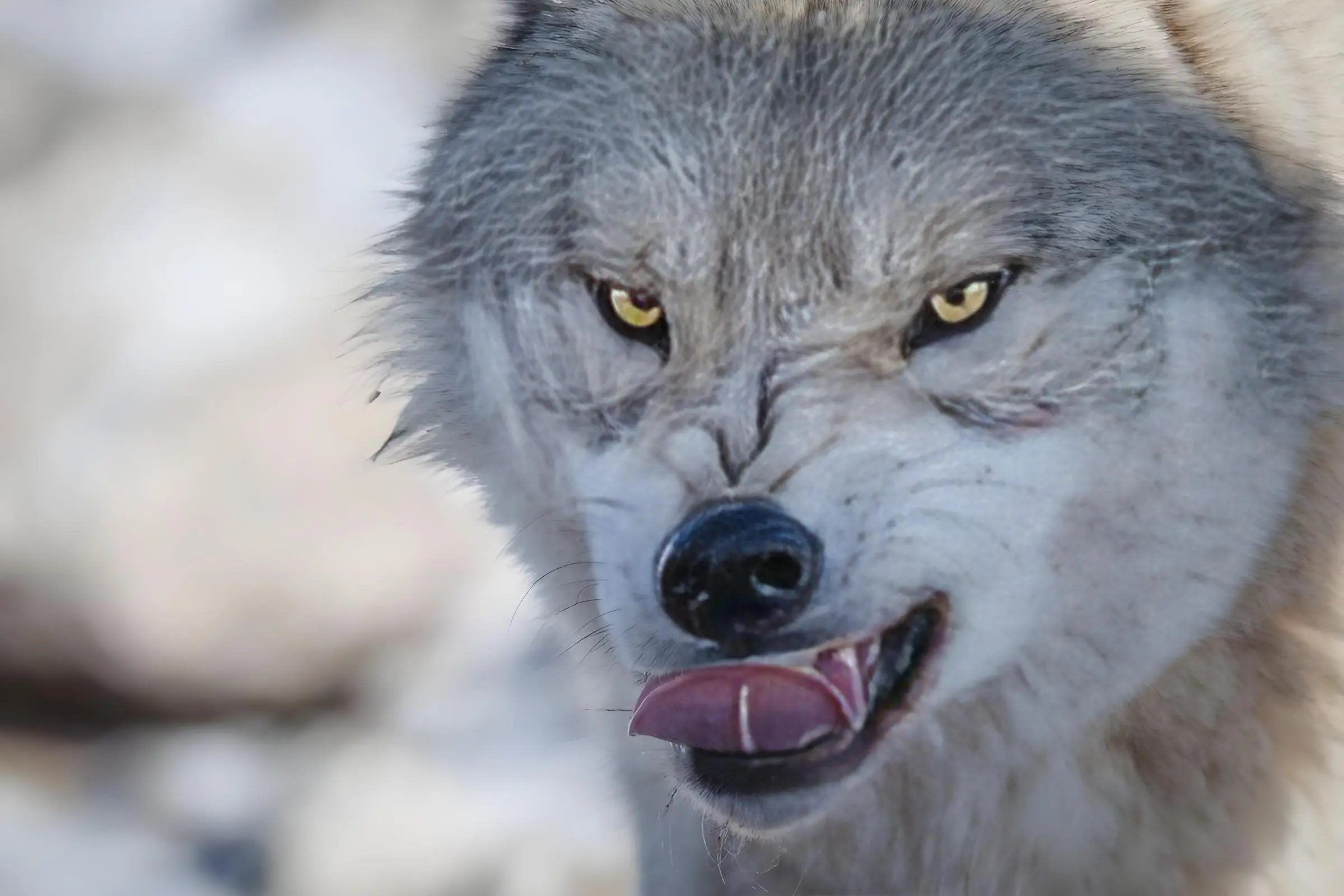 成年狼体重30-50公斤,牙齿锋利,单个战斗力不强,但群居可达10-20只,由头狼带领,分工明确,凭超强耐力追逐猎物至力竭,再撕咬要害致死,以鹿、羊等为食。