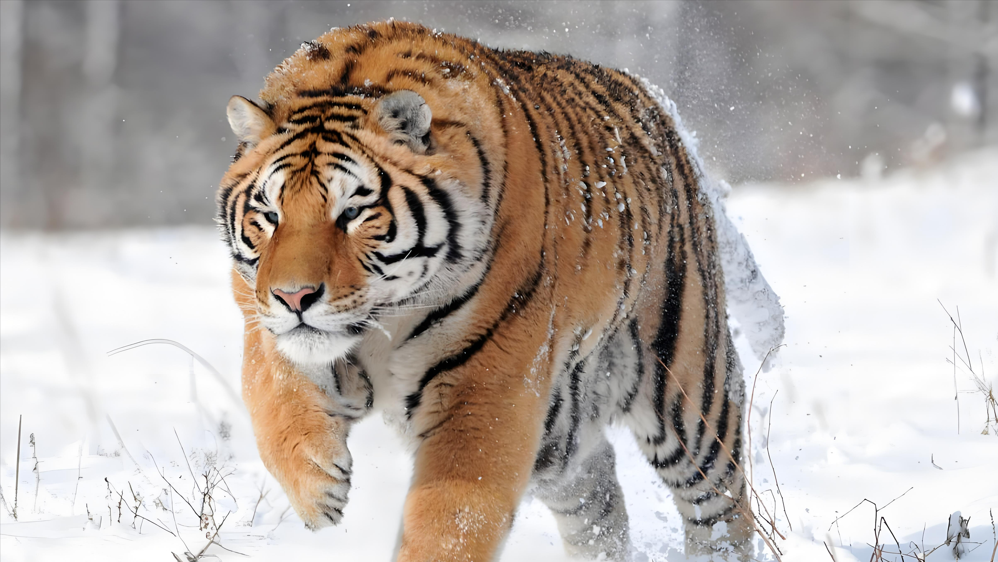 成年雄虎体重可达300公斤以上,四肢粗壮,爪子锋利,咬合力高达400公斤,捕猎时几乎一招致命;它们擅长潜伏突袭,利用树林掩护靠近猎物,哪怕野猪、黑熊也能轻松制服。