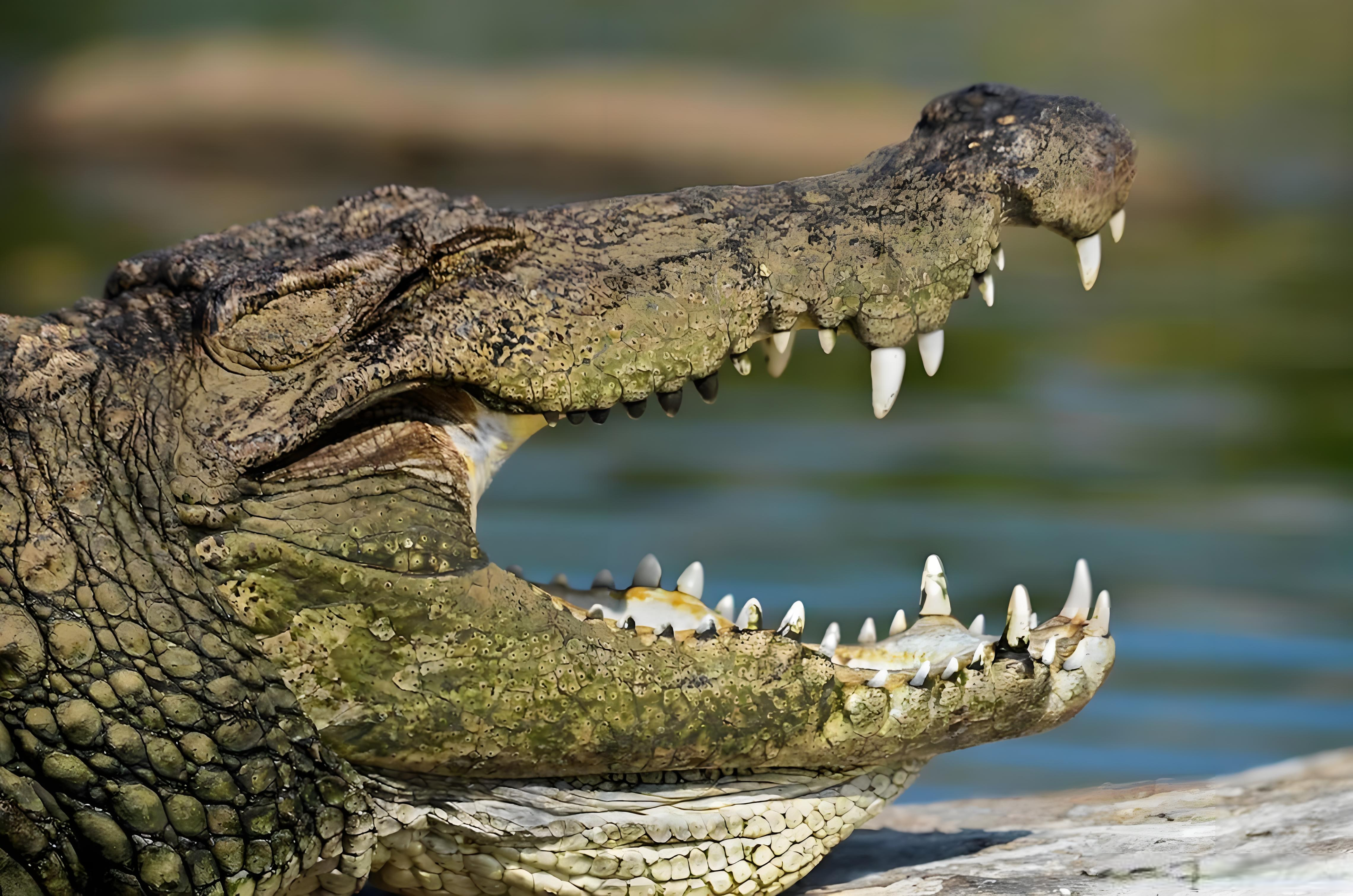 成年湾鳄体长6-9米,体重1000-2000公斤,咬合力高达1900公斤,能轻松咬碎水牛骨头、海龟硬壳;擅长潜伏水中突袭,将猎物拖入水中淹死再吞噬,甚至敢攻击人类。